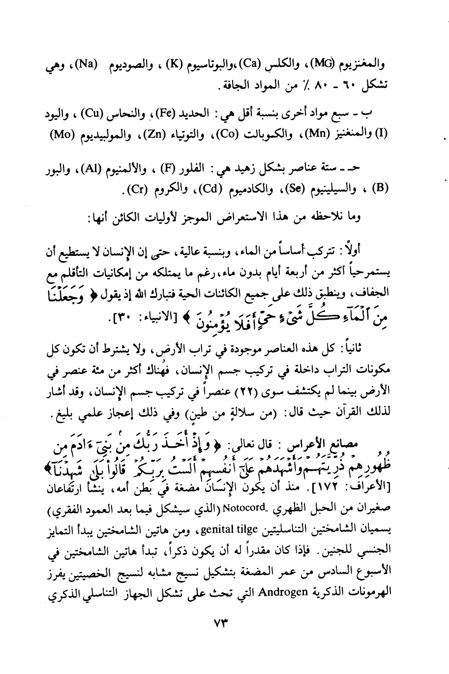 ثانيا: كل هذه العناصر موجودة في تراب الأرض، ولا يشترط أن تكون كل مكونات التراب داخلة في تركيب جسم الانسان، فهناك أكثر من مئة عنصر في الأرض بينما لم يكتشف سوى (22) عنصرا في تركيب جسم الانسان، وقد أشار لذلك القرآن حيث قال: (من سلالة من طين) وفي ذلك إعجاز علمي بليغ.