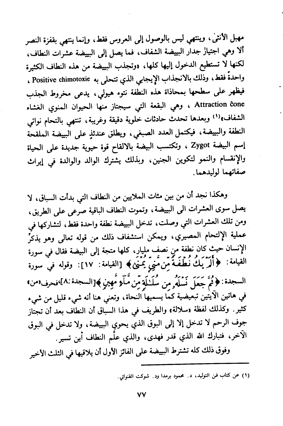 ويمكن استشفاف ذلك من قوله تعالى وهو يذكر الانسان حيث كان نطفة من نصف مليار، كلها متجهة إلى البيضة فقال في سورة القيامة: (ألم يك نطفة من منى يمنى) [القيامة: 17] : وقوله في سورة السجدة: (ثم جعل نسله من سلالة من ماء مهين) [السجدة: 8]