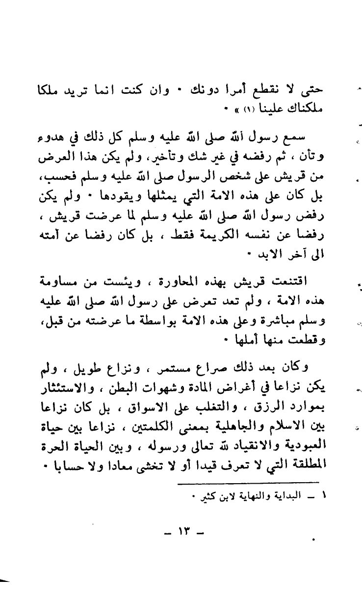 وكان بعد ذلك صراع مستمر، ونزاع طويل، ولم يكن نزاعا في أغراض المادة وشهوات البطن، والاستئثار بموارد الرزق، والتغلب على الأسواق، بل كان نزاعا بين الإسلام والجاهلية بمعنى الكلمتين، نزاعا بين حياة العبودية والانقياد لله تعالى ورسوله، وبين الحياة الحرة المطلقة التي لا تعرف قيدا أو لا تخشى معادا ولا حسابا.