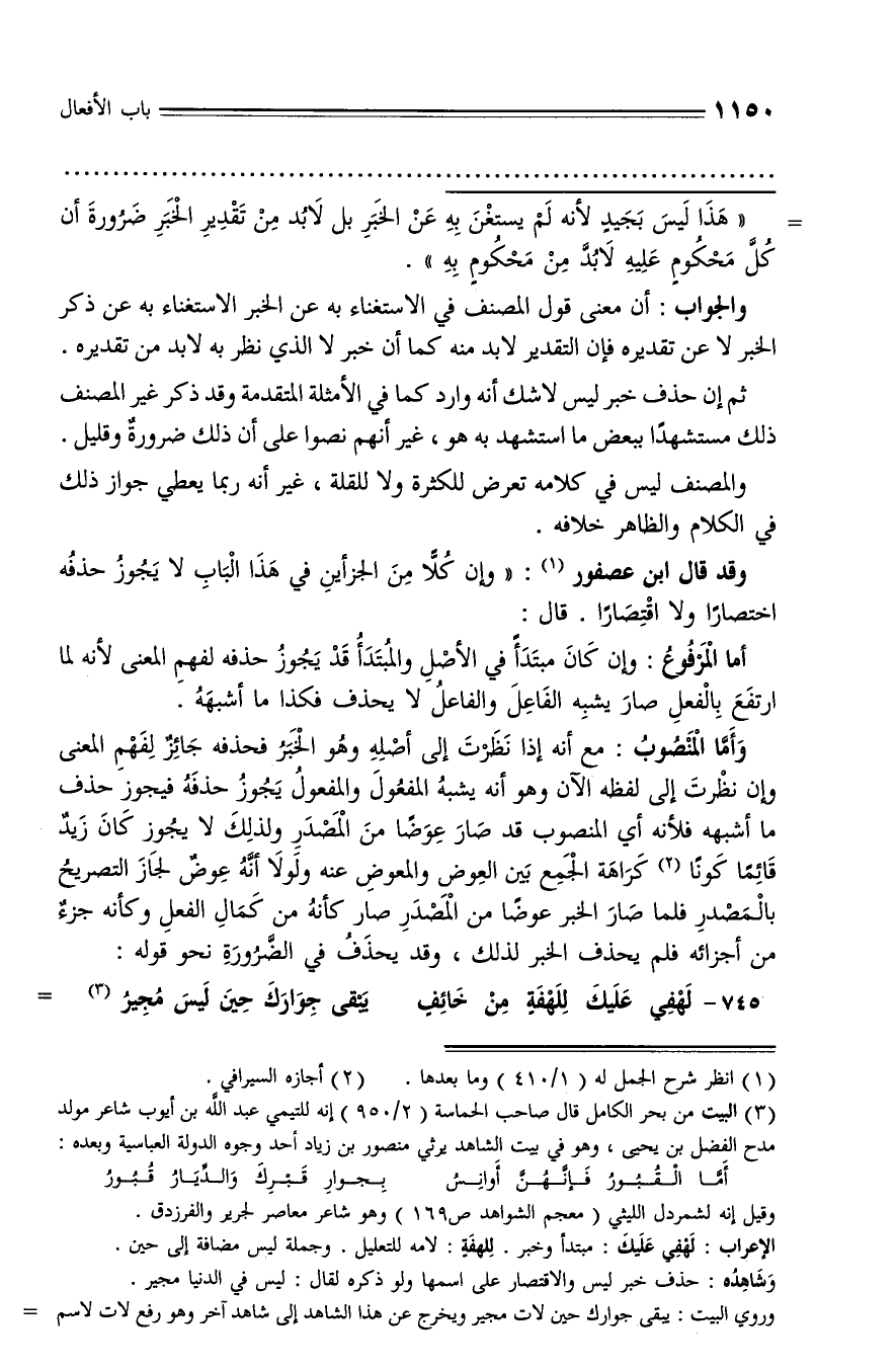 «هذا ليس بجيد لأنه لم يستغن به عن الخبر بل لا بد من تقدير الخبر ضرورة أن كلّ محكوم عليه لا بدّ من محكوم به».