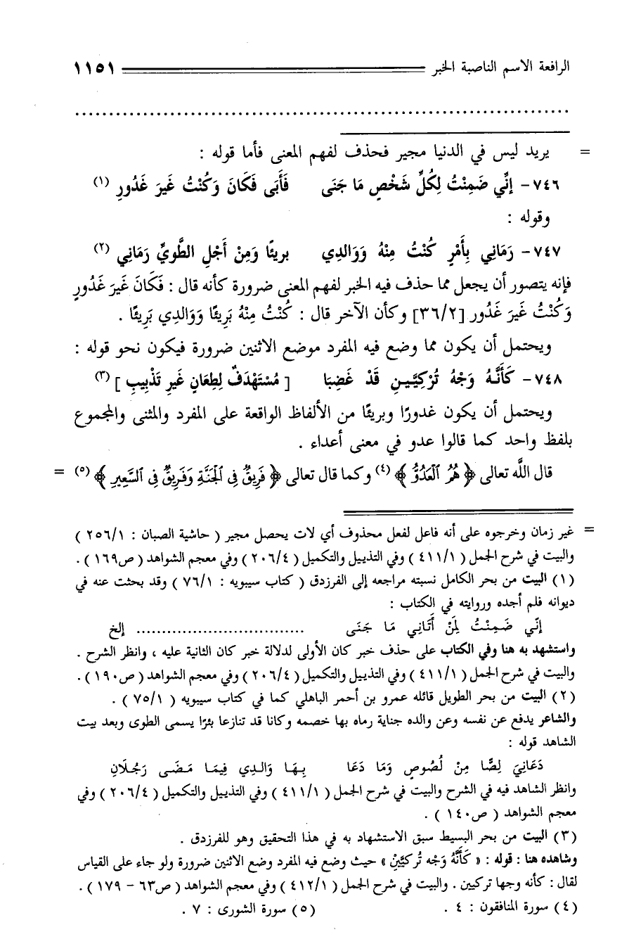 وانظر الشاهد فيه في الشرح والبيت في شرح الجمل (1/ 411) وفي التذييل والتكميل (4/ 206) وفي معجم الشواهد (ص 140).