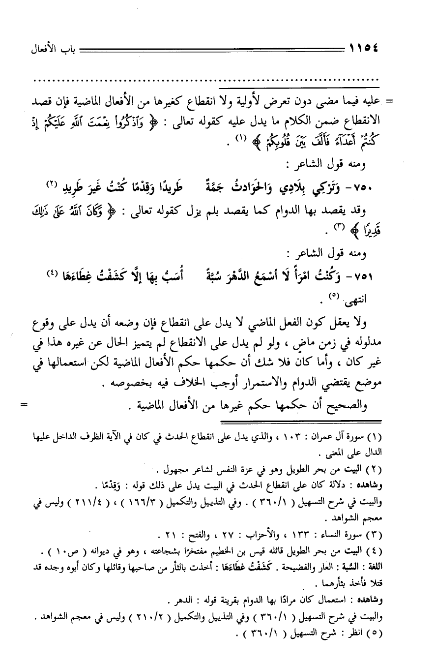 وشاهده: دلالة كان على انقطاع الحدث في البيت يدل على ذلك قوله: وقدما.