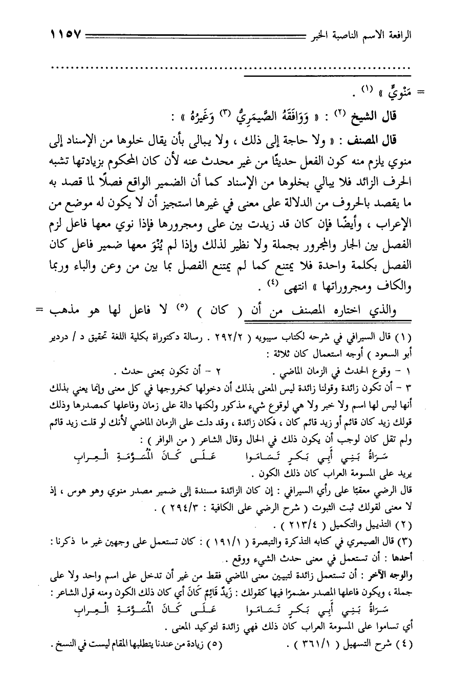 (¬1) قال السيرافي في شرحه لكتاب سيبويه (2/ 292. رسالة دكتوراة بكلية اللغة تحقيق د/ دردير أبو السعود) أوجه استعمال كان ثلاثة: