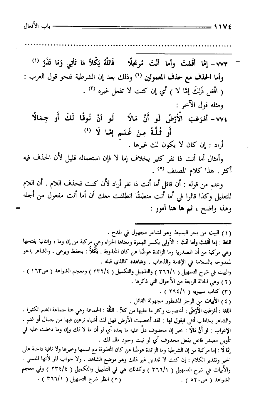 اللغة: إما أقمت وأما أنت: الأولى بكسر الهمزة ومعناها الجزاء وهي مركبة من إن وما، والثانية بفتحها وهي مركبة من أن المصدرية وما الزائدة عوضا عن كان المحذوفة. يكلأ: يحفظ ويرعى. والشاعر يدعو لممدوحه بالسلامة في الإقامة والذهاب. وشاهده كالذي قبله.