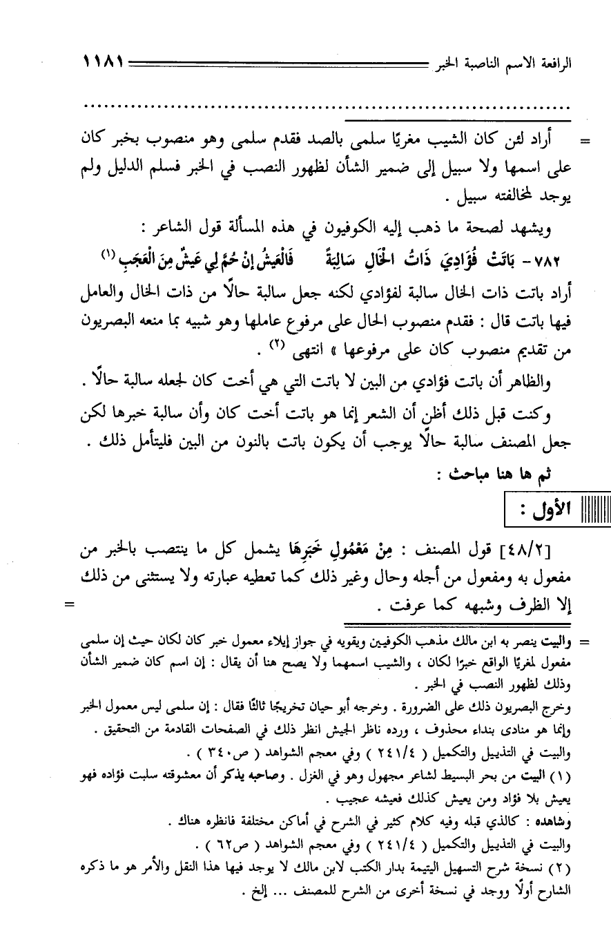(¬2) نسخة شرح التسهيل اليتيمة بدار الكتب لابن مالك لا يوجد فيها هذا النقل والأمر هو ما ذكره الشارح أولا ووجد في نسخة أخرى من الشرح للمصنف ... إلخ.