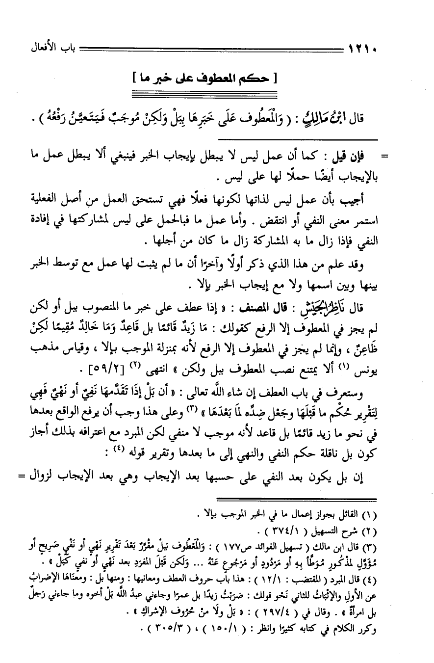 (¬3) قال ابن مالك (تسهيل الفوائد ص 177): والمعطوف ببل مقرّر بعد تقرير نهي أو نفي صريح أو مؤوّل لمذكور موطّأ به أو مردود أو مرجوع عنه ... ولكن قبل المفرد بعد نهي أو نفي كبل».