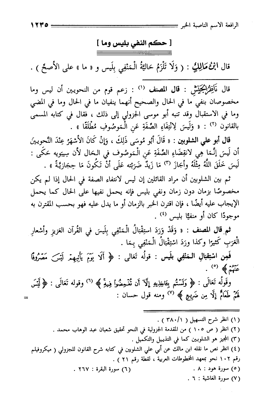 (¬4) انظر نص ما نقله ابن مالك عن أبي علي الشلوبين في كتابه شرح القانون للجزولي (ميكروفيلم رقم 102 نحو بمعهد المخطوطات العربية، لقطة رقم 21).