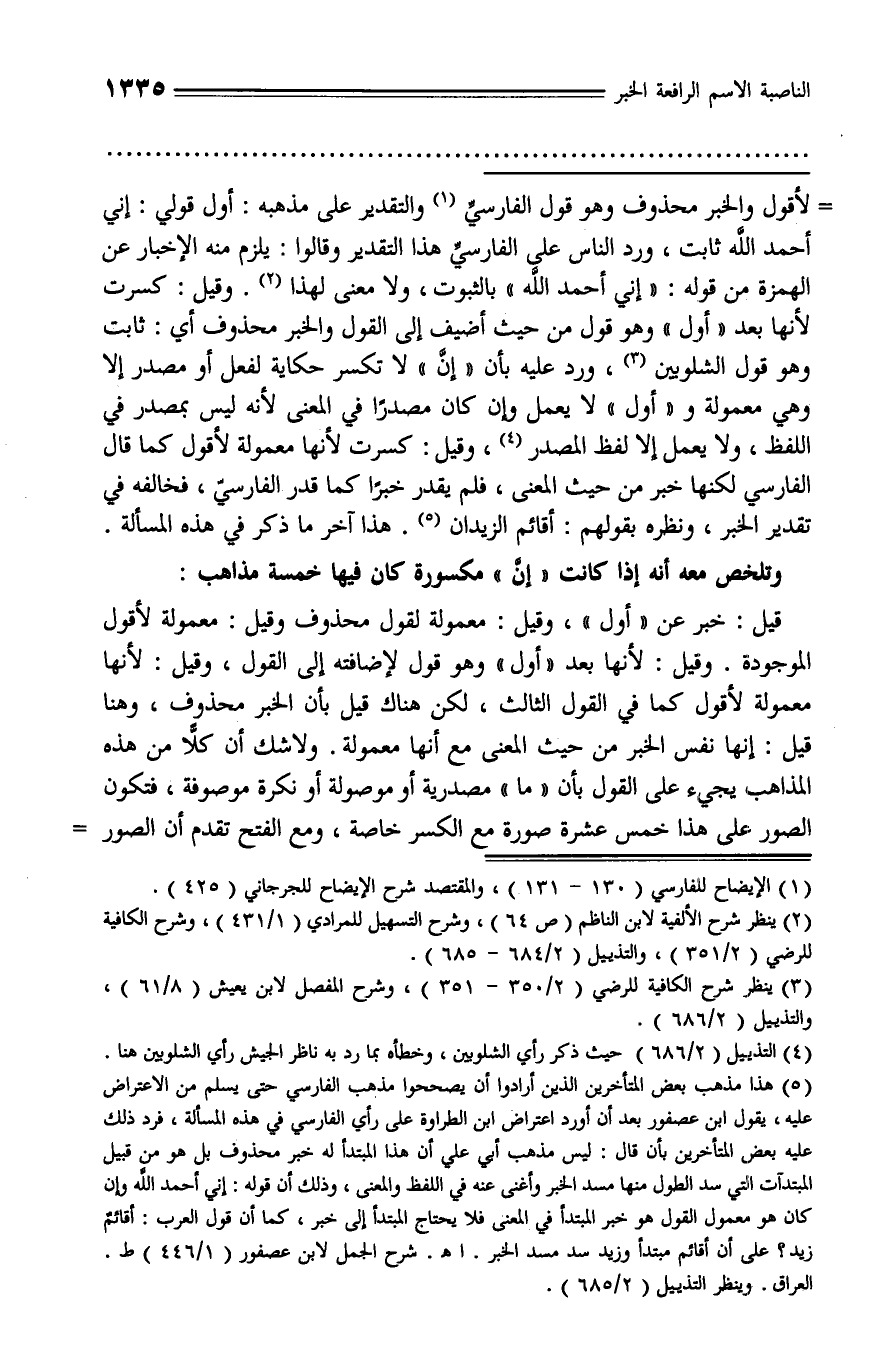(¬3) ينظر شرح الكافية للرضي (2/ 350 - 351)، وشرح المفصل لابن يعيش (8/ 61)، والتذييل (2/ 686).