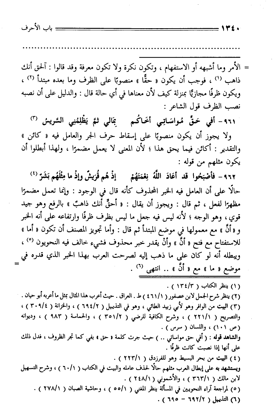 (¬5) لمراجعة آراء النحويين في المسألة ينظر المغني (1/ 55)، وحاشية الصبان (1/ 278).