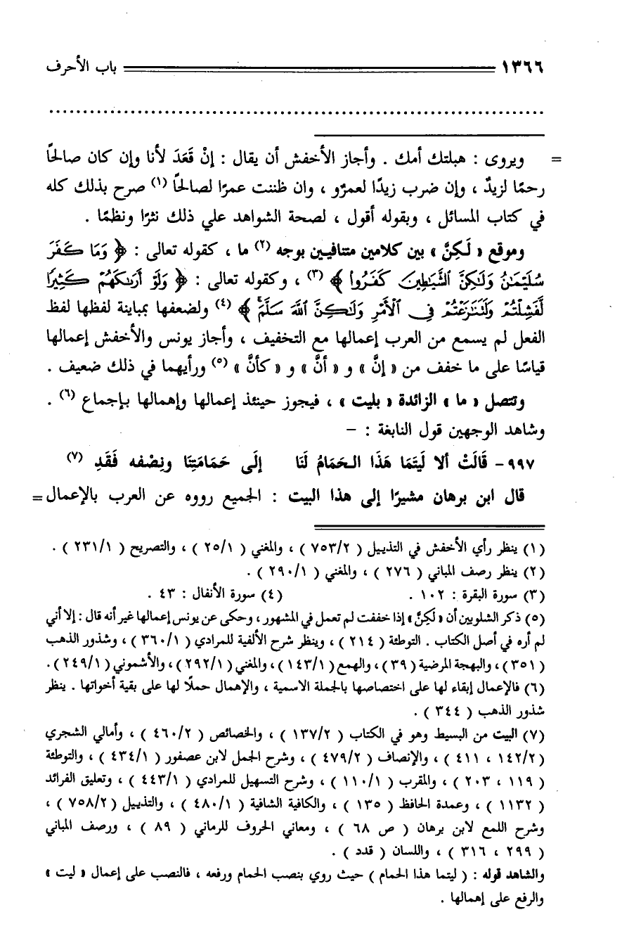 (¬1) ينظر رأي الأخفش في التذييل (2/ 753)، والمغني (1/ 25)، والتصريح (1/ 231).
