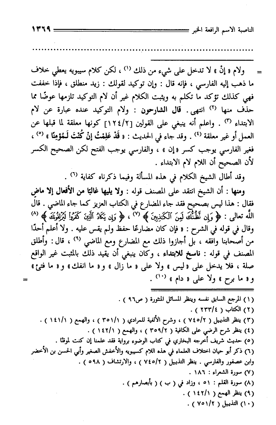 (¬4) ينظر شرح الرضي على الكافية (2/ 359)، والهمع (1/ 142).