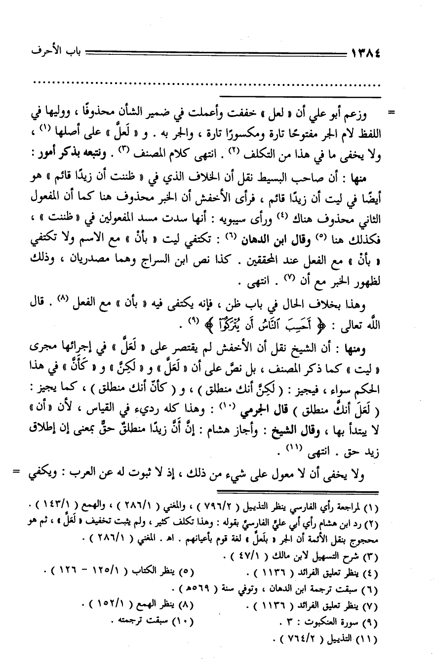 (¬1) لمراجعة رأي الفارسي ينظر التذييل (2/ 796)، والمغني (1/ 286)، والهمع (1/ 143).