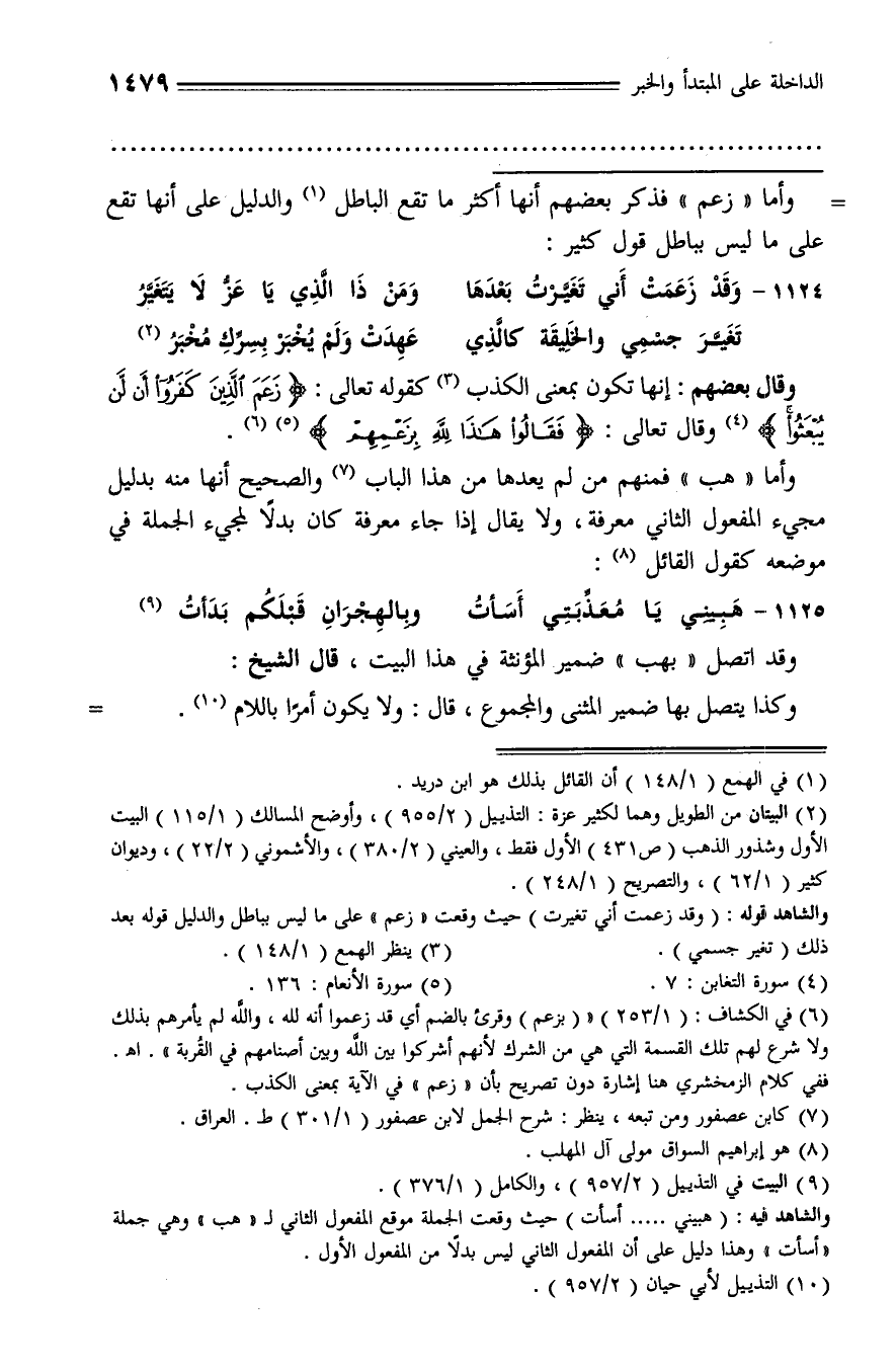 (¬9) البيت في التذييل (2/ 957)، والكامل (1/ 376).