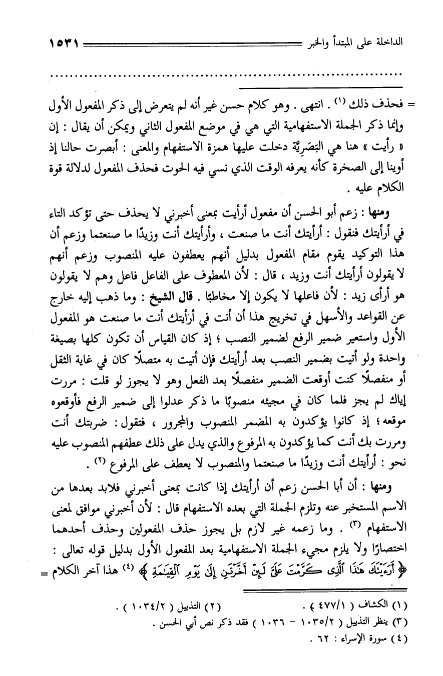(¬3) ينظر التذييل (2/ 1035 - 1036) فقد ذكر نص أبي الحسن.