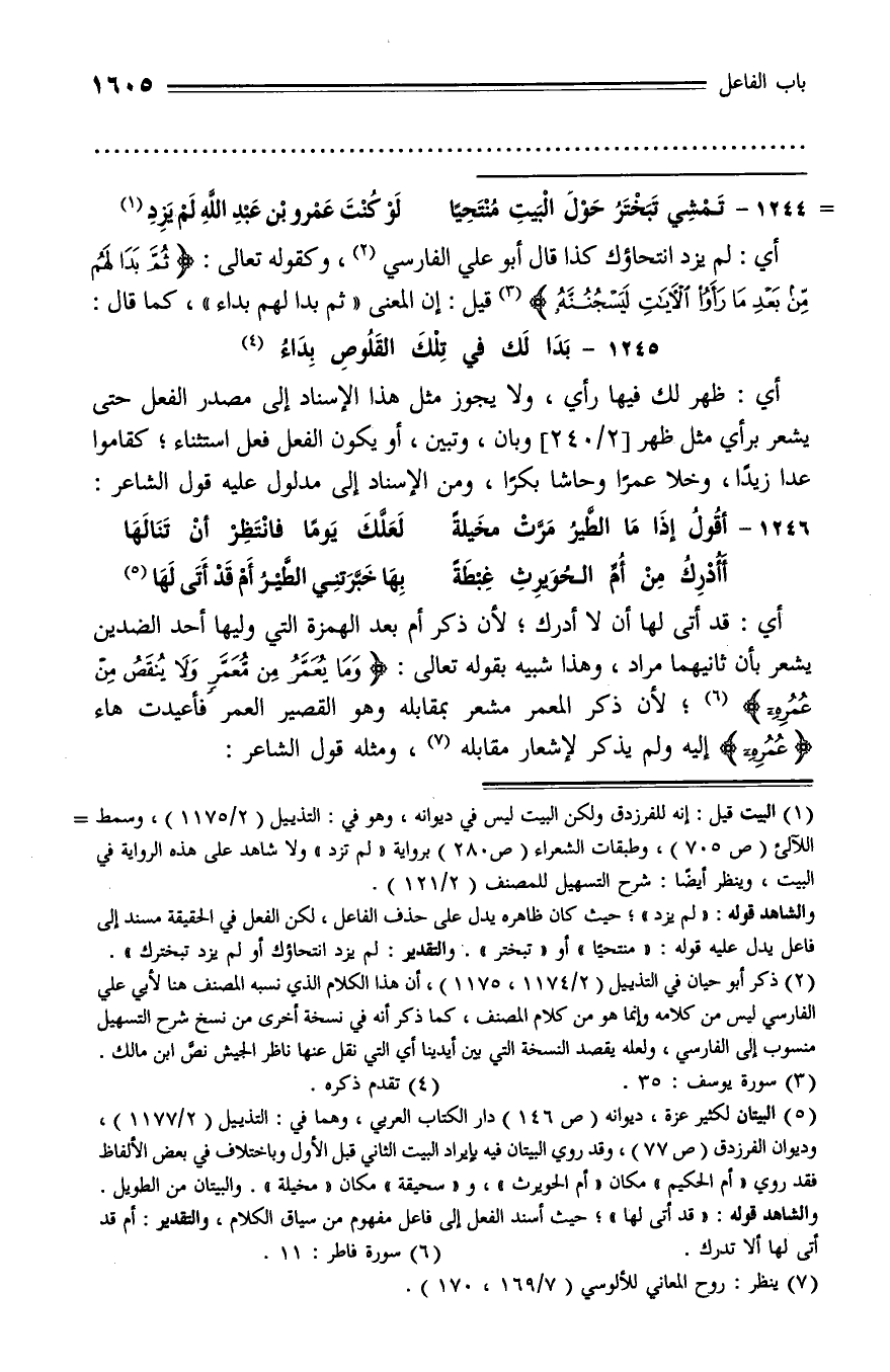 (¬2) ذكر أبو حيان في التذييل (2/ 1174، 1175)، أن هذا الكلام الذي نسبه المصنف هنا لأبي علي الفارسي ليس من كلامه وإنما هو من كلام المصنف، كما ذكر أنه في نسخة أخرى من نسخ شرح التسهيل منسوب إلى الفارسي، ولعله يقصد النسخة التي بين أيدينا أي التي نقل عنها ناظر الجيش نصّ ابن مالك.