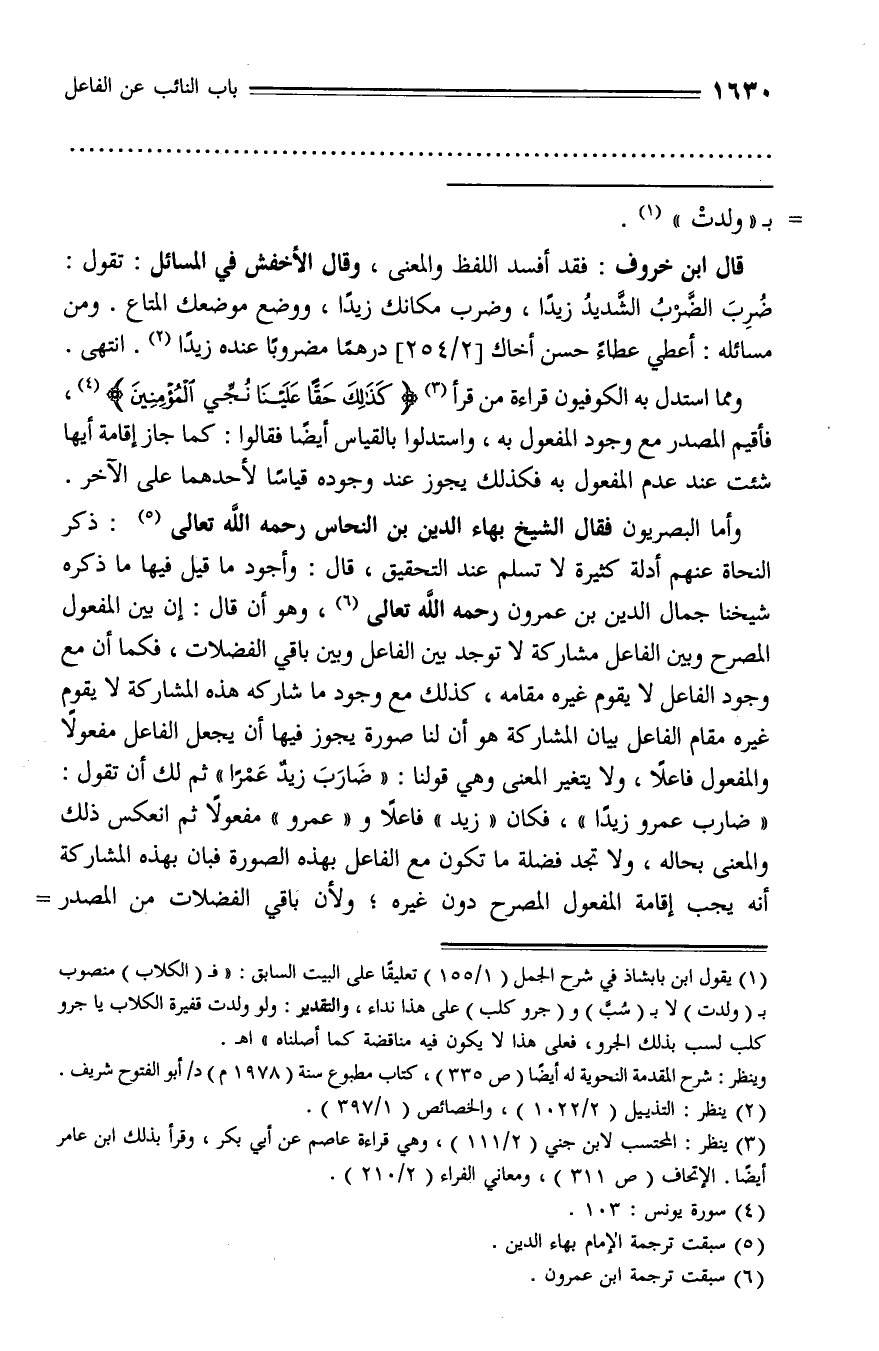 (¬2) ينظر: التذييل (2/ 1022)، والخصائص (1/ 397).