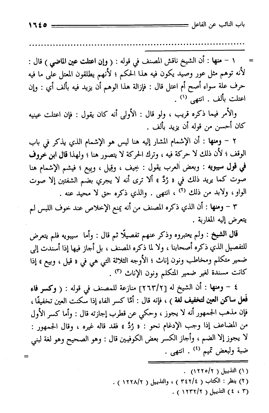 1 - منها: أن الشيخ ناقش المصنف في قوله: (وإن اعتلت عين الماضي) قال: