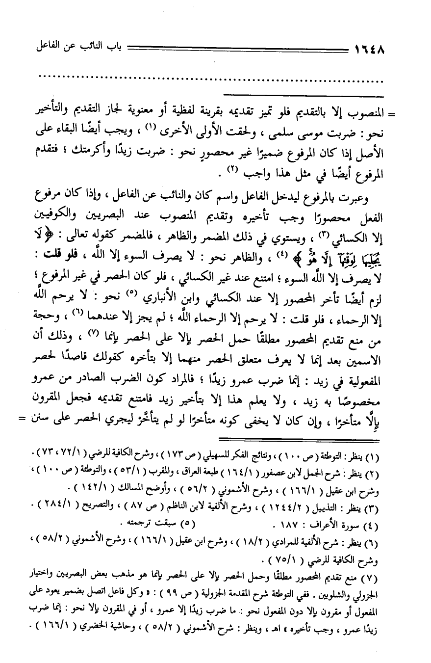 (¬6) ينظر: شرح الألفية للمرادي (2/ 18)، وشرح ابن عقيل (1/ 166)، وشرح الأشموني (2/ 58)، وشرح الكافية للرضي (1/ 75).