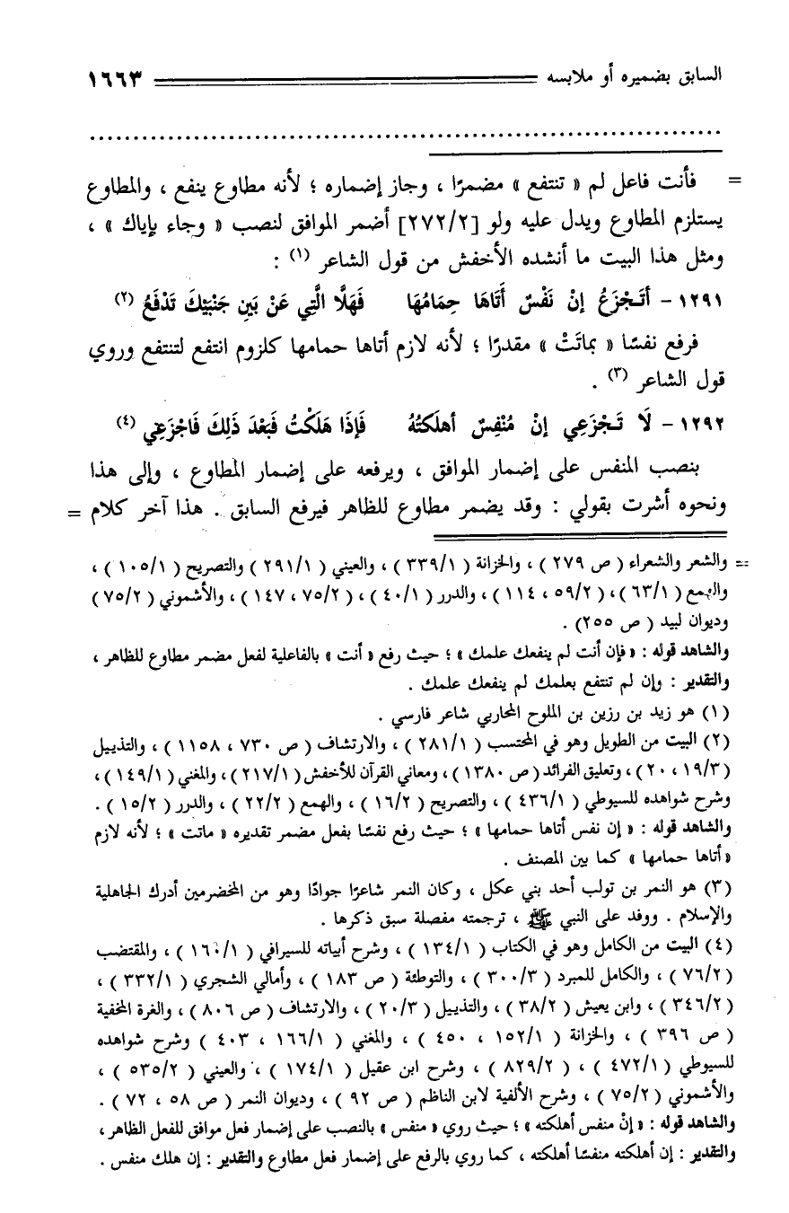 1291 - أتجزع إن نفس أتاها حمامها ... فهلّا الّتي عن بين جنبيك تدفع (¬2)