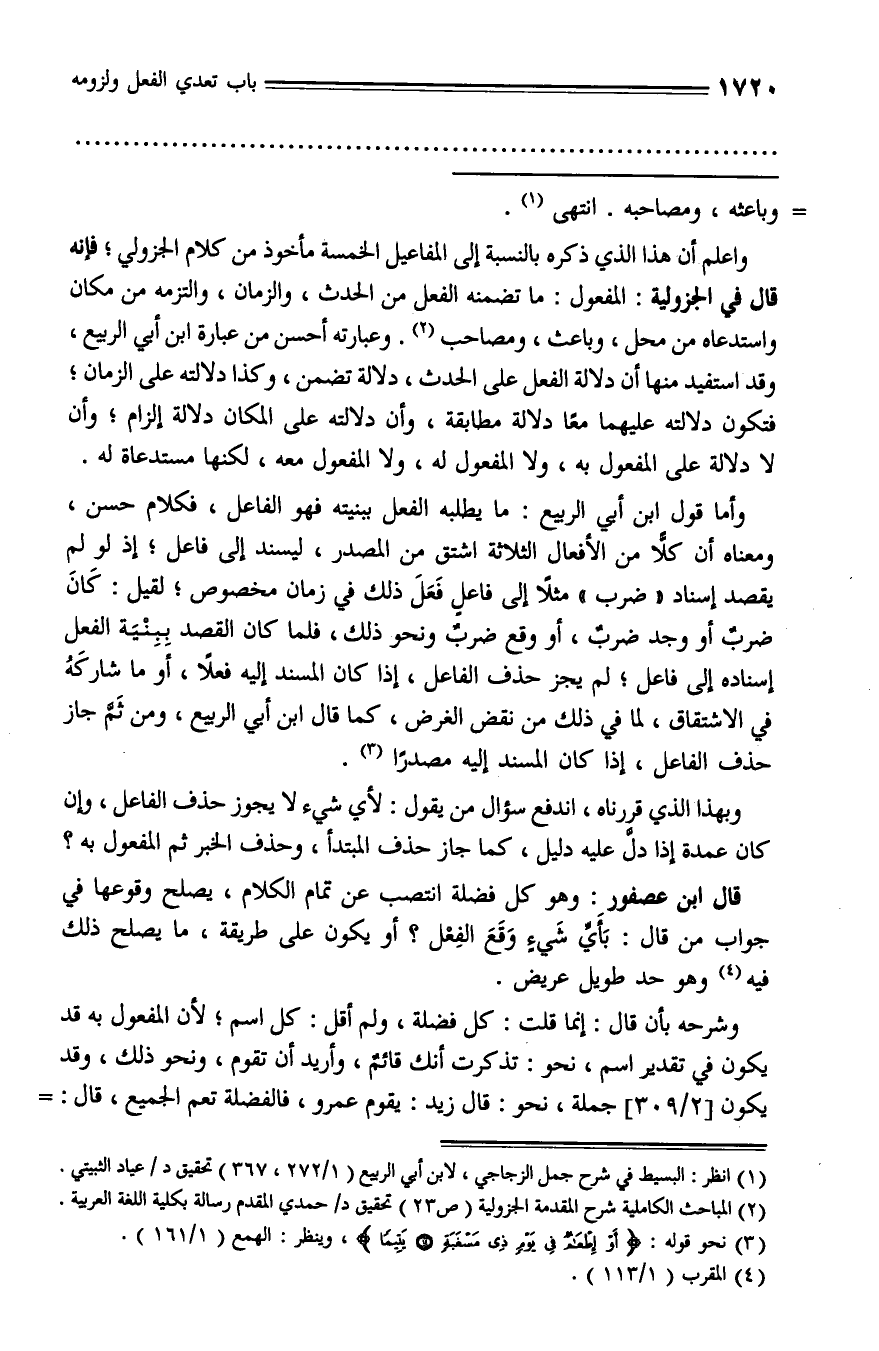 (¬1) انظر: البسيط في شرح جمل الزجاجي، لابن أبي الربيع (1/ 272، 367) تحقيق د/ عياد الثبيتي.