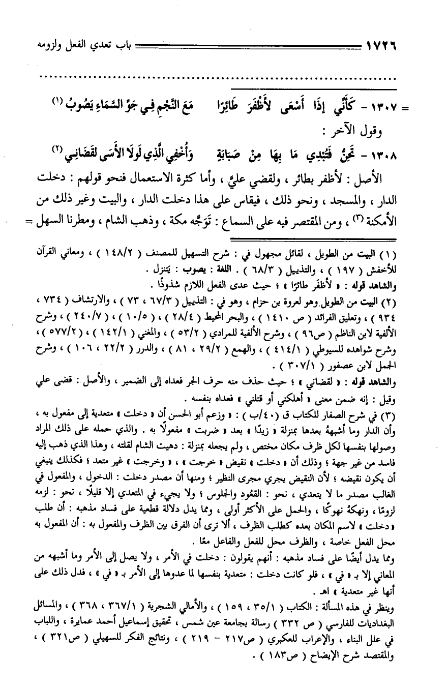 1307 - كأنّي إذا أسعى لأظفر طائرا ... مع النّجم في جوّ السّماء يصوب (¬1)