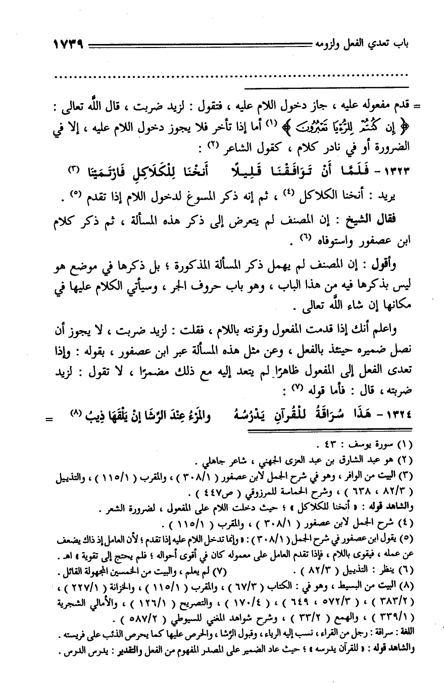 (¬5) يقول ابن عصفور في شرح الجمل (1/ 308): «وإنما تدخل اللام عليه إذا تقدم؛ لأن العامل إذ ذاك يضعف عن عمله، فيقوى باللام، فإذا تقدم العامل على معموله كان في أقوى أحواله؛ فلم يحتج إلى تقوية» اه.
