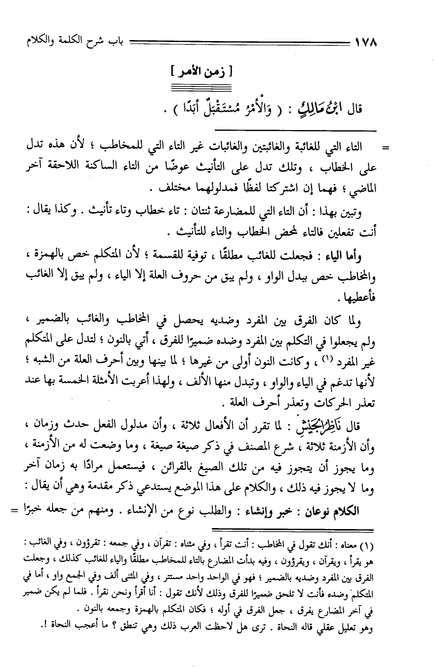 (¬1) معناه: أنك تقول في المخاطب: أنت تقرأ، وفي مثناه: تقرآن، وفي جمعه: تقرؤون، وفي الغائب: