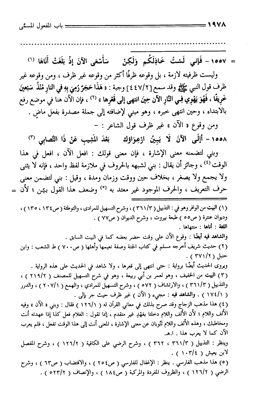 (¬3) البيت من الخفيف، وهو لعمر بن أبي ربيعة، وهو في شرح التسهيل للمصنف (2/ 219)، والتذييل (3/ 361)، والارتشاف (572)، وشرح التسهيل للمرادي، والهمع (1/ 207)، والدرر (1/ 174). والشاهد فيه: مجيء (الآن) غير ظرف حيث جر بإلى.