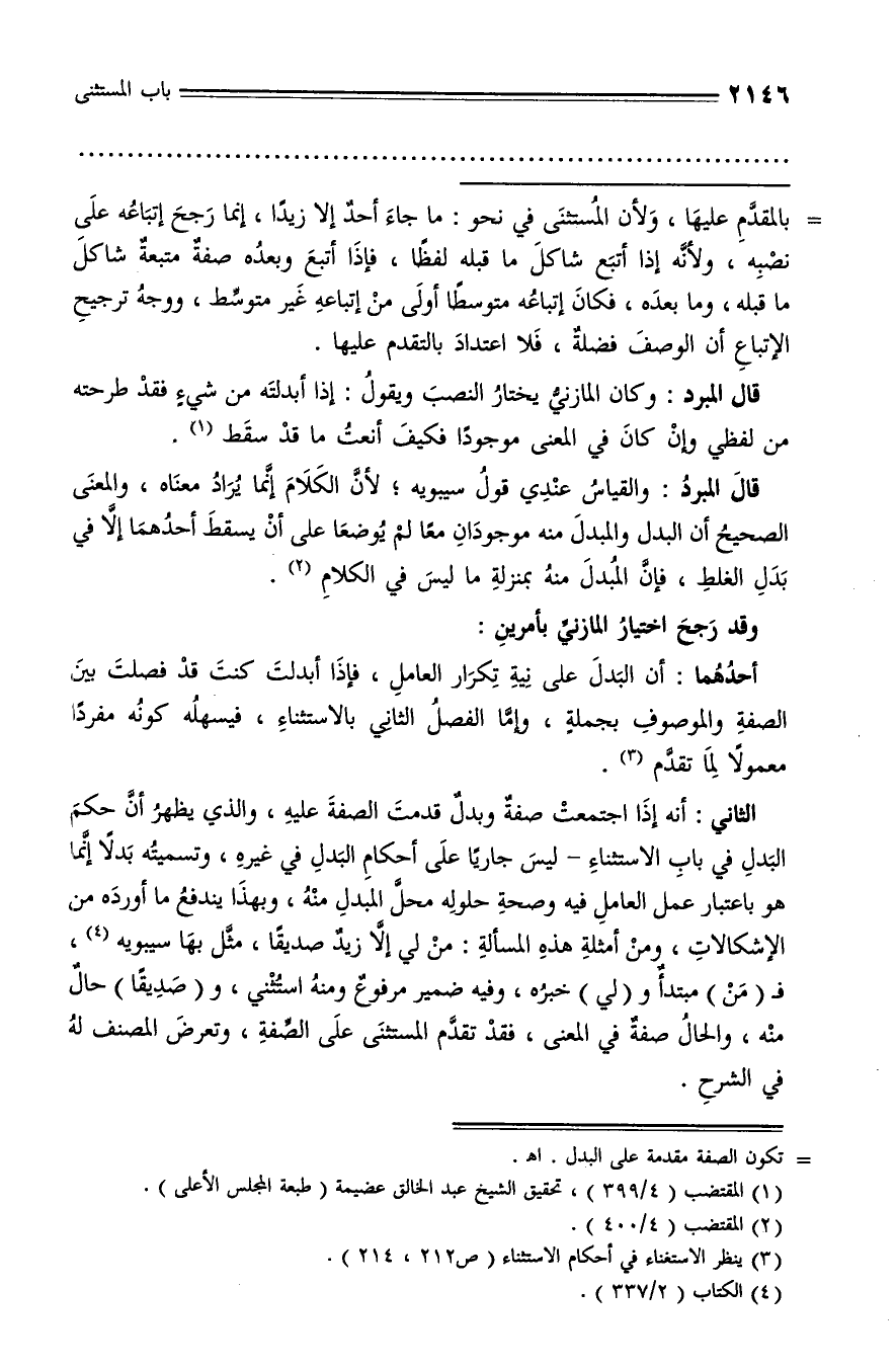 (¬3) ينظر الاستغناء في أحكام الاستثناء (ص 212، 214).