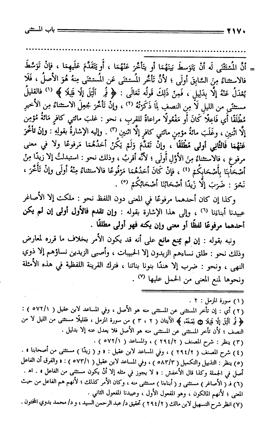 (¬7) انظر شرح التسهيل لابن مالك (2/ 294) تحقيق د/ عبد الرحمن السيد، ود/ محمد بدوي المختون.