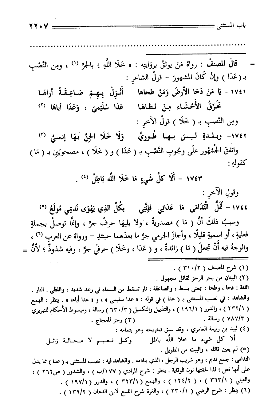 قال المصنف: رواه من يوثق بروايته: «خلا الله» بالجرّ (¬1)، ومن النّصب بـ (عدا) وإن كان المشهور - قول الشاعر: