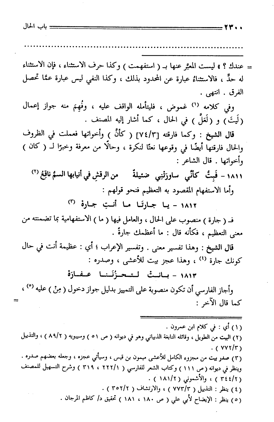 قال الشيخ: وكما فارقته [3/ 74] (كأنّ) وأخواتها فعملت في الظروف والحال فارقتها أيضا في وقوعها نعتا لنكرة، وحالا من معرفة وخبرا لـ (كان) وأخواتها. قال الشاعر: