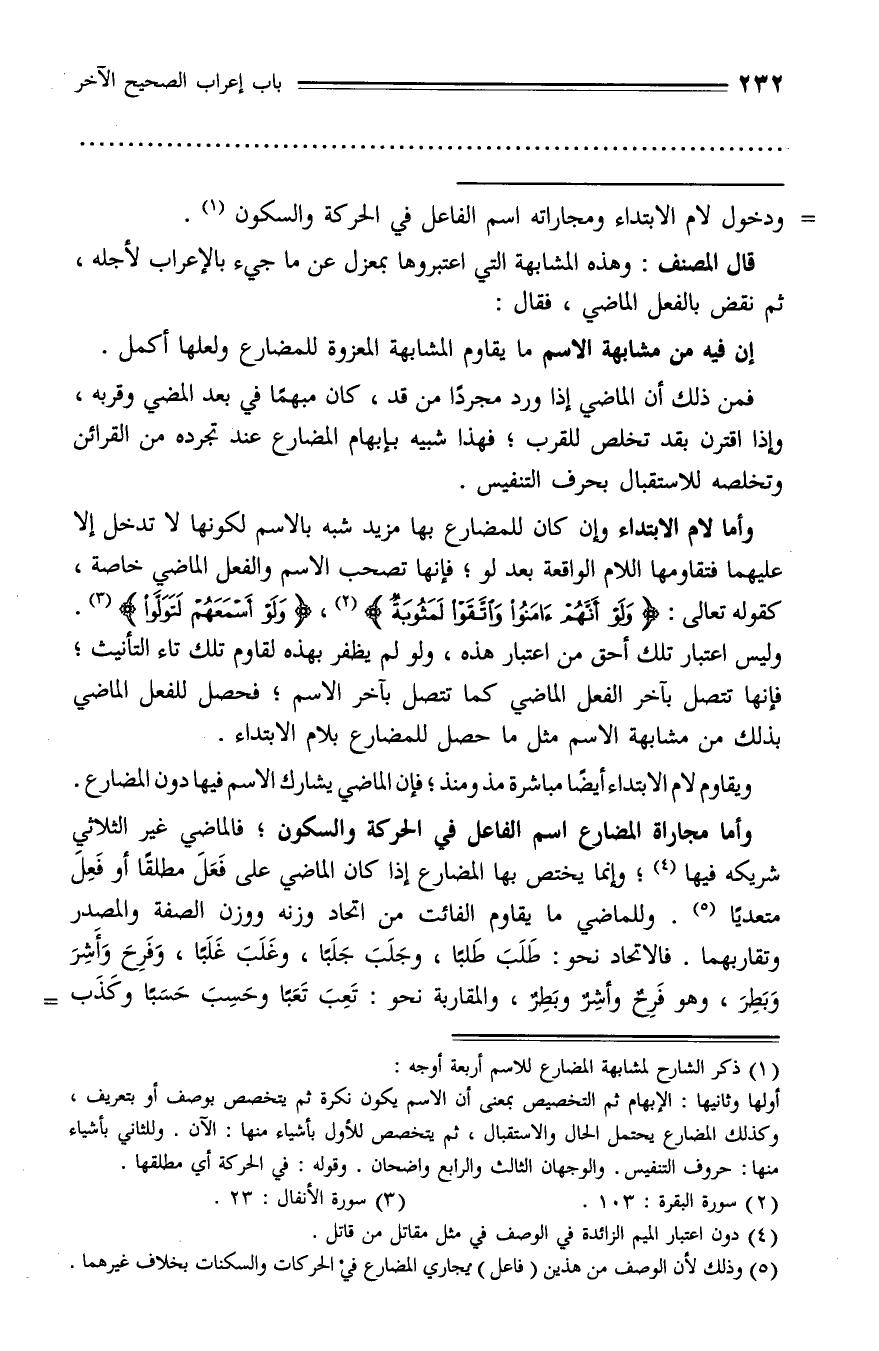 ودخول لام الابتداء ومجاراته اسم الفاعل في الحركة والسكون (¬1).