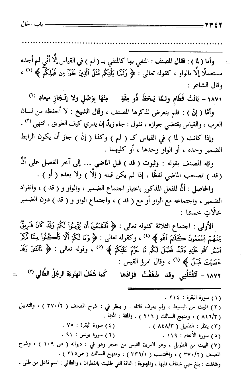 (¬7) البيت من الطويل، وهو لامرئ القيس بن حجر وهو في: ديوانه (ص 109)، وشرح المصنف (2/ 370)، والمحتسب (1/ 339)، ومنهج السالك (ص 215).