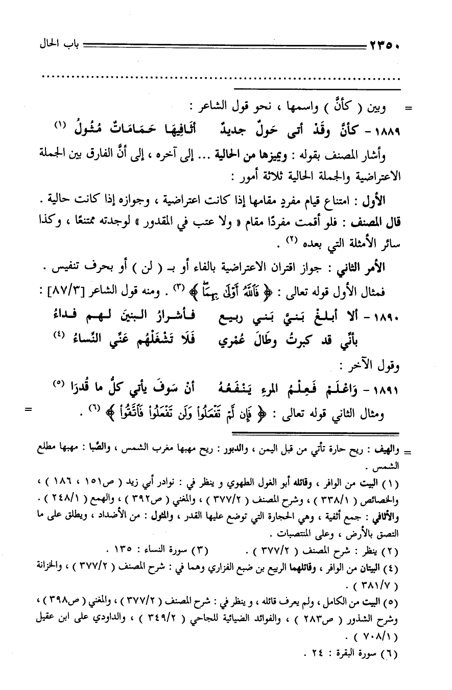 (¬5) البيت من الكامل، ولم يعرف قائله، وينظر في: شرح المصنف (2/ 377)، والمغني (ص 398)، وشرح الشذور (ص 283)، والفوائد الضيائية للجاحي (2/ 349)، والداودي على ابن عقيل (1/ 708).