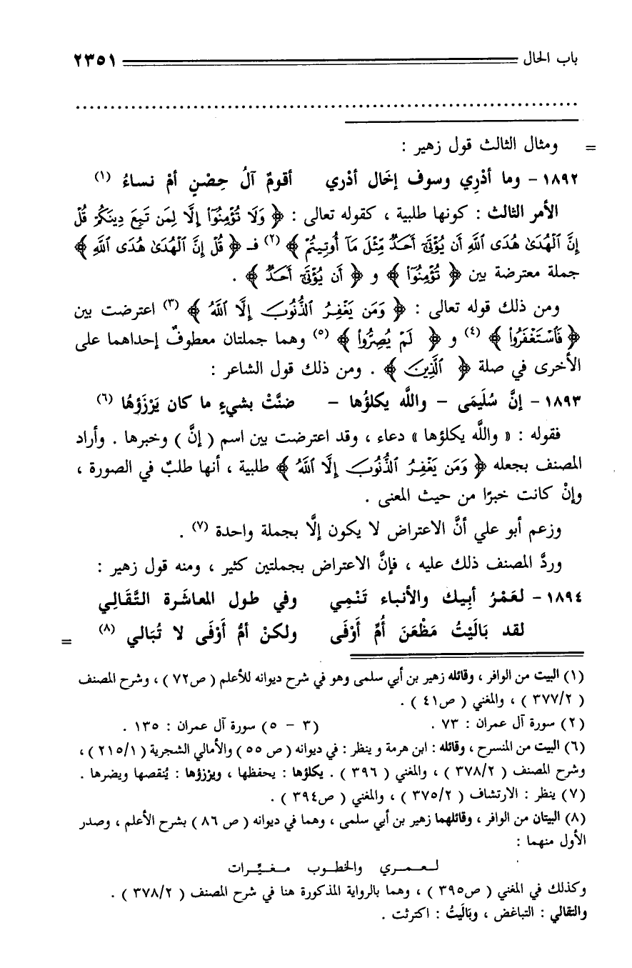 (¬1) البيت من الوافر، وقائله زهير بن أبي سلمى وهو في شرح ديوانه للأعلم (ص 72)، وشرح المصنف (2/ 377)، والمغني (ص 41).