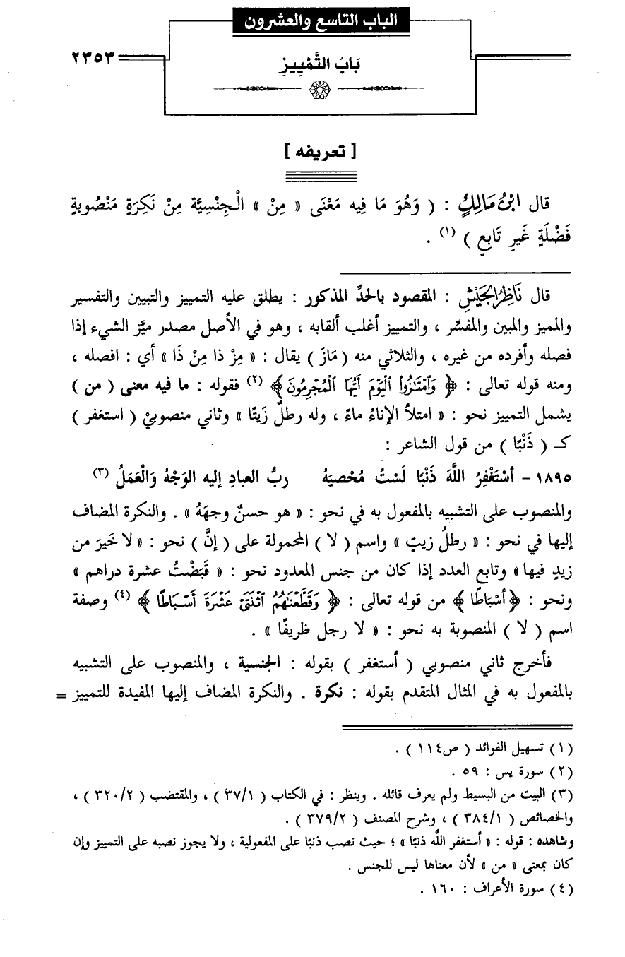 قال ابن مالك: (وهو ما فيه معنى «من» الجنسيّة من نكرة منصوبة فضلة غير تابع) (¬1).