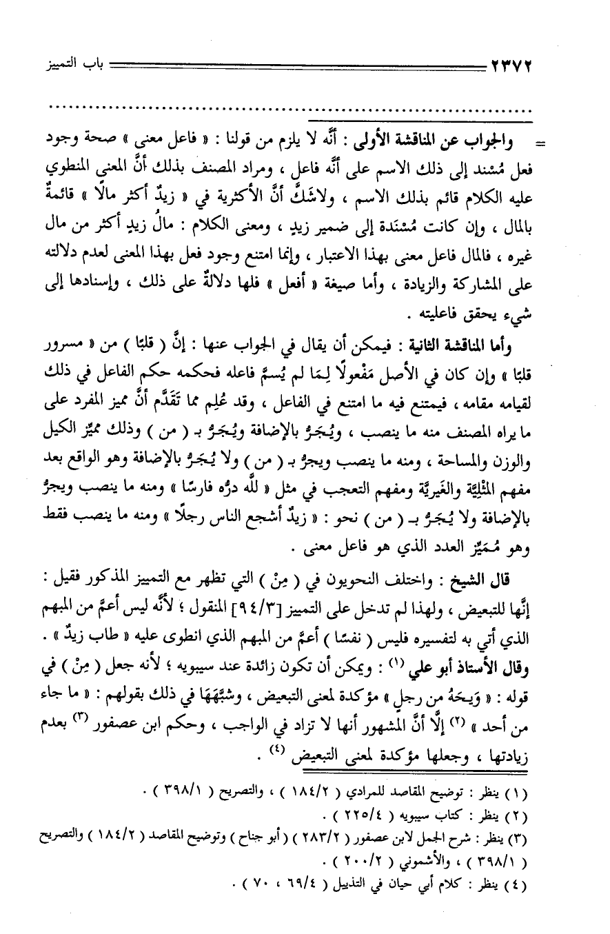 (¬4) ينظر: كلام أبي حيان في التذييل (4/ 69، 70).