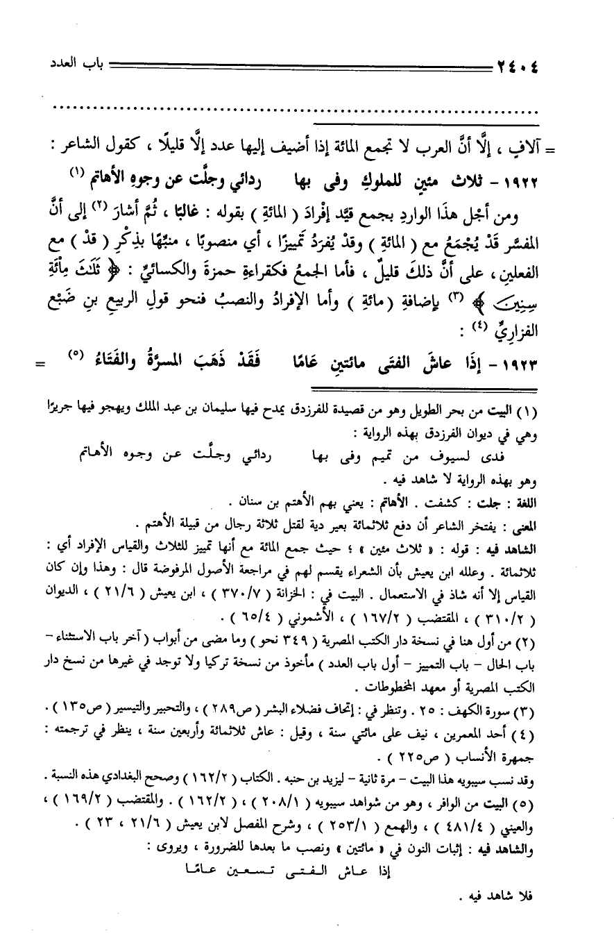 (¬2) من أول هنا في نسخة دار الكتب المصرية (349 نحو) وما مضى من أبواب (آخر باب الاستثناء - باب الحال - باب التمييز - أول باب العدد) مأخوذ من نسخة تركيا ولا توجد في غيرها من نسخ دار الكتب المصرية أو معهد المخطوطات.