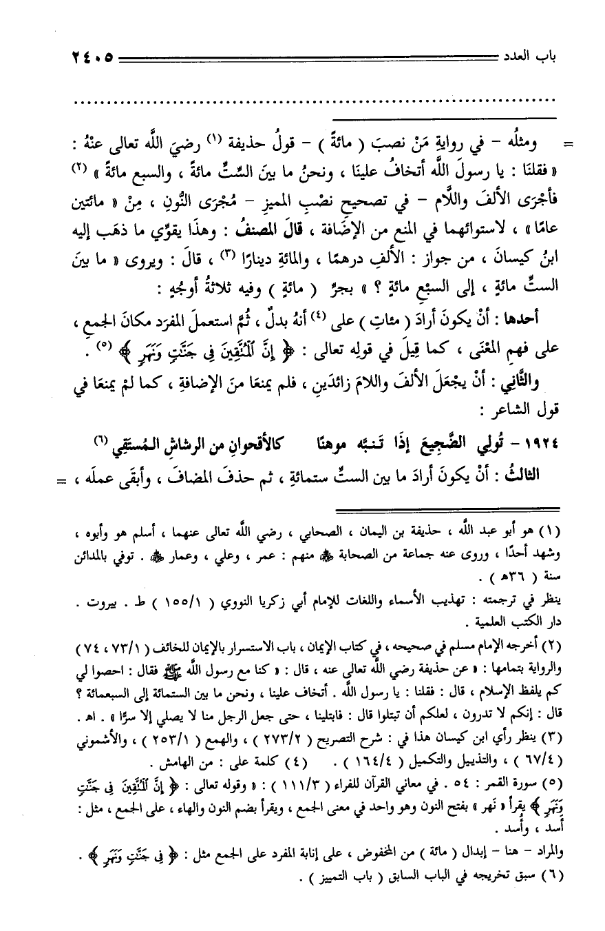 ومثله - في رواية من نصب (مائة) - قول حذيفة (¬1) رضي الله تعالى عنه: