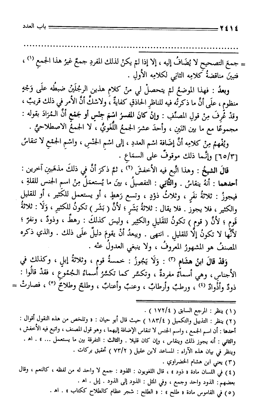 ويفهم من كلامه أنّ إضافة اسم العدد، إلى اسم الجنس، واسم الجمع لا تنقاس [3/ 65] وإنّما ذلك موقوف على السماع.
