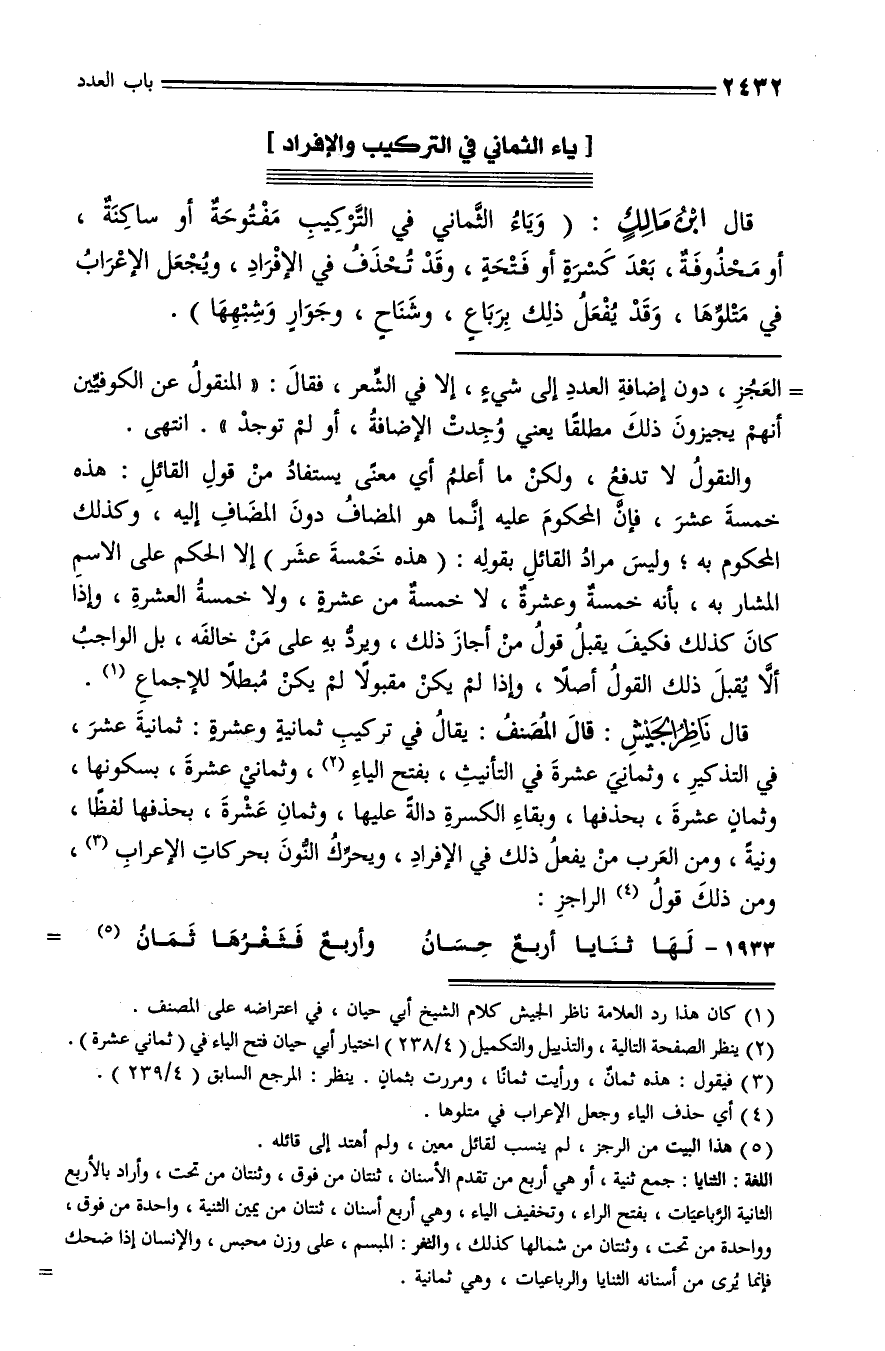 (¬2) ينظر الصفحة التالية، والتذييل والتكميل (4/ 238) اختيار أبي حيان فتح الياء في (ثماني عشرة).