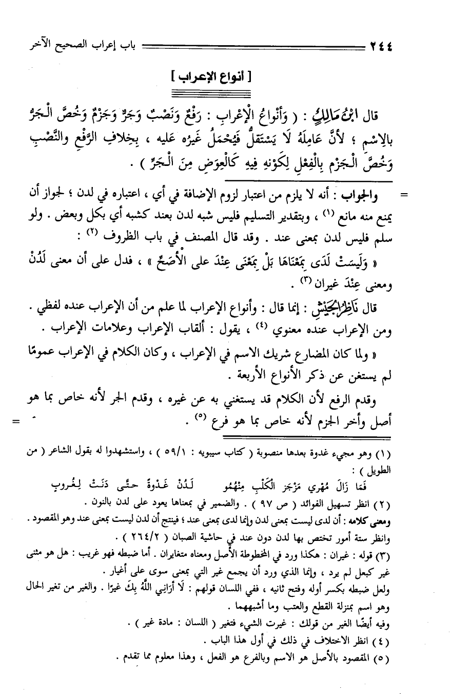 «ولما كان المضارع شريك الاسم في الإعراب، وكان الكلام في الإعراب عموما لم يستغن عن ذكر الأنواع الأربعة.