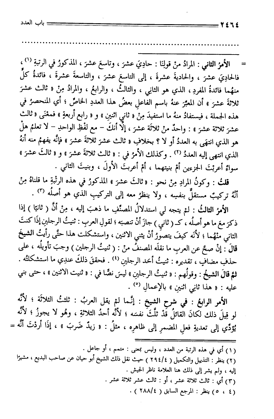 قلت: وكون المراد من نحو: «ثالث عشر» المذكور في هذه الرتبة ما قلناه من أنّه تركيب مستقلّ بنفسه، ولا ينظر معه إلى التركيب الذي هو أصله (¬3).