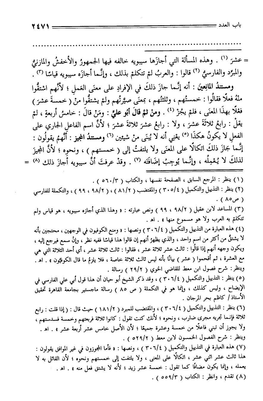 (¬2) ينظر: التذييل والتكميل (4/ 305) والمقتضب (2/ 81)، (2/ 98، 99)، والتكملة للفارسي (ص 85).