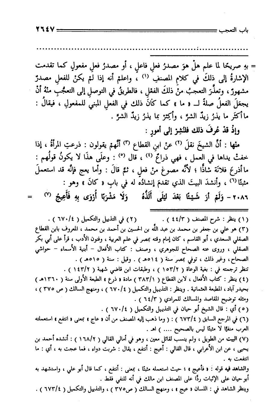 (¬6) في المرجع السابق (4/ 673): (وما ذهب إليه المصنف من أن «عاج» بمعنى «انتفع» استعملته العرب منفيّا لا مثبتا ليس بالصحيح ...) ا