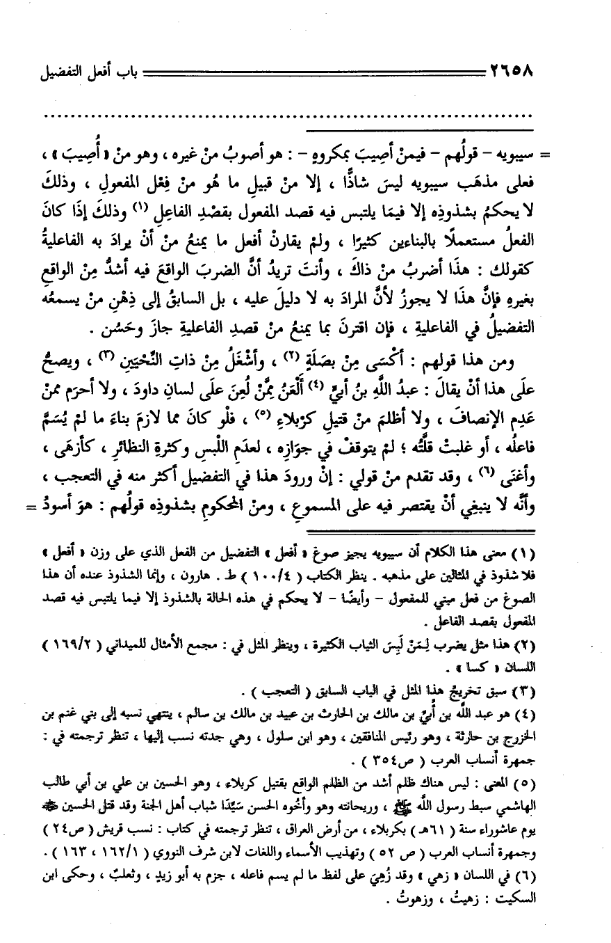 (¬1) معنى هذا الكلام أن سيبويه يجيز صوغ «أفعل» التفضيل من الفعل الذي على وزن «أفعل» فلا شذوذ في المثالين على مذهبه. ينظر الكتاب (4/ 100) ط. هارون، وإنما الشذوذ عنده أن هذا الصوغ من فعل مبني للمفعول - وأيضا - لا يحكم في هذه الحالة بالشذوذ إلا فيما يلتبس فيه قصد المفعول بقصد الفاعل.