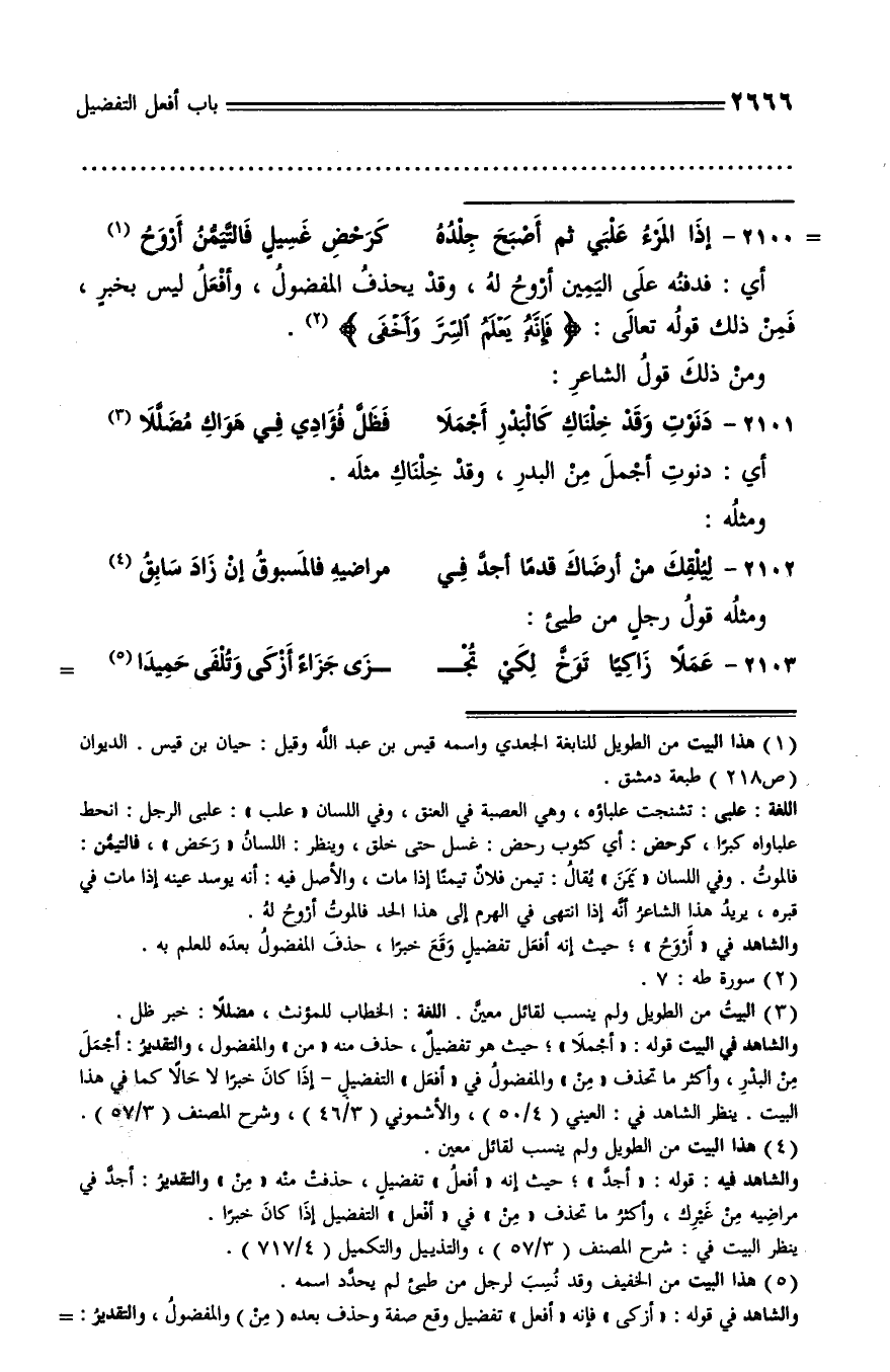 والشاهد في «أروح»؛ حيث إنه أفعل تفضيل وقع خبرا، حذف المفضول بعده للعلم به.