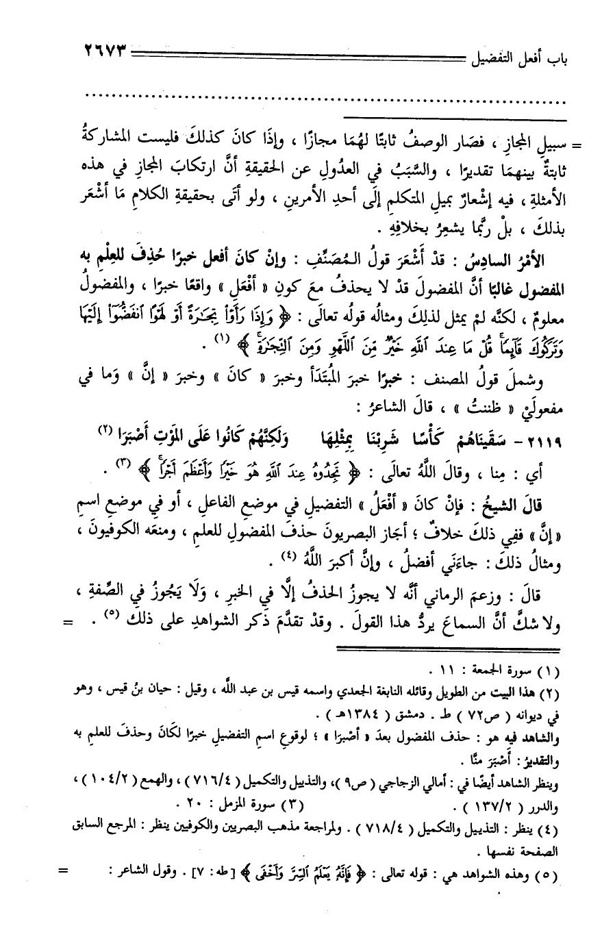 (¬4) ينظر: التذييل والتكميل (4/ 718). ولمراجعة مذهب البصريين والكوفيين ينظر: المرجع السابق الصفحة نفسها.