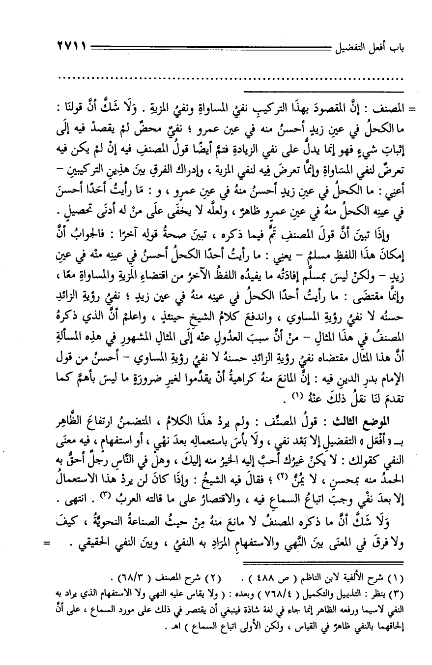المصنف: إنّ المقصود بهذا التركيب نفي المساواة ونفي المزية. ولا شكّ أنّ قولنا: